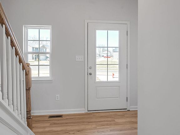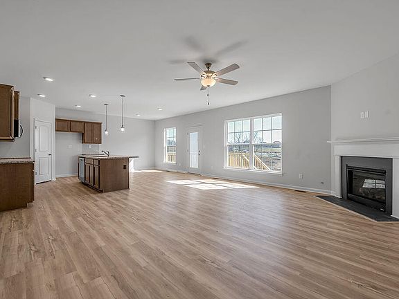 The Bedford Hill, part of the Trend Collection by Ball Homes, is two story plan on a walk out basement with a very open first floor layout. The island kitchen offers both a breakfast area and countertop dining, and a large pantry. Granite kitchen counter tops with stainless steel 50/50 under-mount sink and full back splash. Upgrade features also include stainless steel appliances including smooth top range, microwave, dishwasher and refrigerator. The kitchen opens to the family room at the rear of the home. Fireplace with gas logs. Upstairs are the primary bedroom suite, three bedrooms and a hall bath. The primary bedroom suite includes a bedroom with vaulted ceiling, large closet, and spacious bath with 4x3 separate shower and 60x42 flat front garden tub. Quartz countertops on all vanities. Raised vanities in baths and 12x10 deck. 1/2 bath rough in . EV charging outlet in garage. Job# 239PX