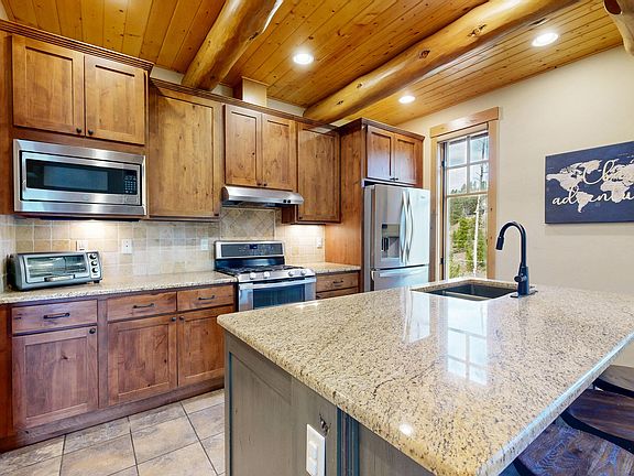 Experience refined mountain living in this fully furnished modern rustic log home, built in 2015 with luxury finishes. Designed for comfort and elegance, it features 4 bedrooms, 3.5 baths, two expansive living rooms, and radiant floor heating with individual controls. The chef's kitchen showcases granite counters, stainless appliances, and vaulted ceilings with exposed beams framing a grand stone fireplace. Outdoors, a covered deck with an endless gas grill invites you to enjoy sunsets, mountain views, and abundant wildlife. The walkout level opens to a private patio with hot tub, creating a secluded spa-like retreat. An oversized heated 2-car garage, roof de-icing, and full snow removal ensure ease of ownership.In high demand, this Superhost property delivers proven rental success.
