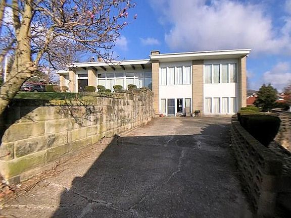 YOU WONT FIND ANOTHER LIKE IT! Unique, stylish & spacious all stone Mid Century Modern offering 3 bedrooms & 3 1/2 bath on just under 3/4 of an acre. Constructed of concrete, steel and stone with floor to ceiling windows in all the right places to take advantage of amazing views, huge rooms, high ceilings, fully finished lower level with family room (has slate flooring with radiant heat), game room, wet bar, fireplace, bedroom and full bath! Central air, 2 car garage and minutes from hospital & shopping.....THIS HOME HAS IT ALL!