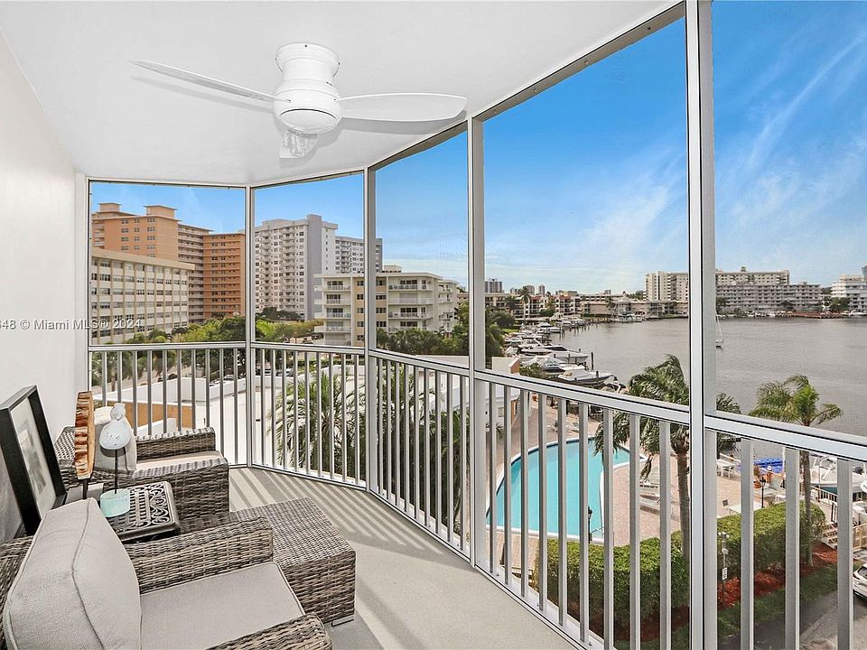 Enjoy beautiful South Florida living in this 2 bedroom luxuriously elegant condo with stunning water views. Completely renovated with thoughtful conveniences including upgraded Jenn-air appliances. A place for everything with spacious rooms and organized closets. This stunning home is ready for you to move in! Relax on your private screened balcony or ride/walk to the gorgeous nearby beaches. Conveniently located near shopping, dining and casinos. Fifteen minutes from Ft Lauderdale Airport. Building amenities include 24-hr manned security gatehouse, clubhouse, pool, gym, bbq area, and Marina boat slips rented through HOA. Worry-free living in this beautifully managed building with new roof and completed 40-year certification.