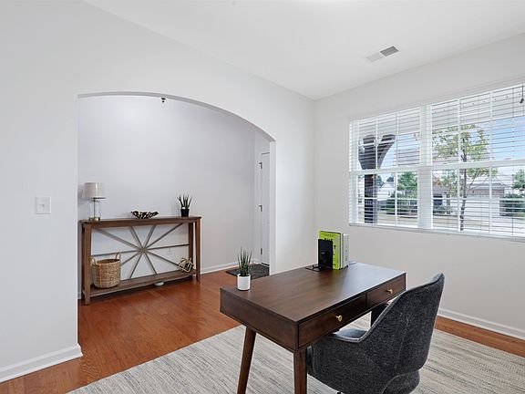 Immaculate home with fresh paint and new carpeting, ready to move right in! This lovely home boasts four bedrooms, hardwoods downstairs, granite counters, gas fireplace, office space, and more! New appliances, including a natural gas range. Fridge, washer, and dryer convey. Situated on a corner lot in a snug cul de sac, there is a large, fully fenced backyard with a pergola for shade. You can't beat the location near downtown Fuquay-Varina's many restaurants and parks. Be sure to view the interactive virtual tour!