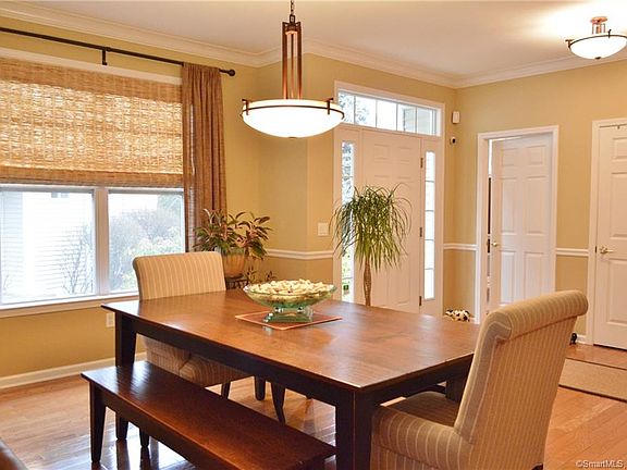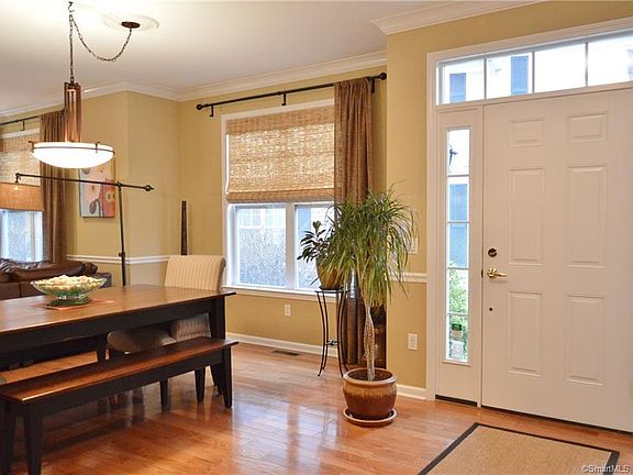Welcome to the Goodwin Estates located in Hartford's historic West End. This lovely Harrison model end unit townhouse features many upgrades. The main floor has an open floor plan with hardwood floors, a fireplace plus lots of recessed lighting and lovely combination living and dining areas with custom window treatments.There are French doors to a private deck with steps to a paver patio. The hardwood floors continues into the eat-in kitchen with lots of cabinet space, granite counters and stainless appliances. There is a stone back splash and under counter lighting. Hard wood continues throughout the 2nd floor. The master suite offers a cozy sitting area, custom plantation shutters, a large walk-in closet (customized plus a luxurious en-suite with double sinks plus a separate tub & shower. There are 2 additional bedrooms and a 2nd full bath. There is also a 3rd floor loft that could be a perfect office, exercise area or reading nook. It also has a large cedar-lined closet. An unfinished dry basement provides great storage space. To complete this wonderful home is an attached 2 car garage. Efficient gas heat with multiple zones (one on each floor. This unit is in a lovely private location overlooking woods. The Goodwin complex also features the original Mansion library/clubhouse, an exercise room plus an outdoor pool. Join a vibrant community with all the West End has to offer - walk to Elizabeth Park or short ride to downtown Hartford or West Hartford center.