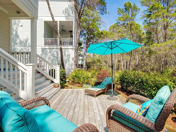 Discover the epitome of coastal living in this impeccably located home nestled within the highly amenitized community of Grande Pointe at Inlet Beach. Situated adjacent to Camp Helen State Park, privacy abounds, offering a serene retreat just moments from the vibrant energy of the Gulf Coast. Step inside this three-bedroom, two-and-a-half-bath home to be greeted by 1,700 square feet of thoughtfully designed living space spread over two levels. With three covered porches and a large back deck surrounded by tranquil landscaping, outdoor relaxation is effortless. The first floor welcomes you with an abundance of natural light, an open-concept layout and a kitchen adorned with granite counters, stainless appliances and a spacious pantry. Entertain guests in the well-sized dining space and living room, or retreat to the privacy of the peaceful surroundings. Upstairs, the oversized master bedroom boasts a private covered balcony, perfect for enjoying morning coffee or evening sunsets. Two additional bedrooms offer ample space for queen beds and share a well-appointed hall bathroom. The convenience of a laundry closet in the upstairs hall adds to the home's functionality. Outside, a brick paver driveway allows parking for four vehicles, ensuring plenty of space for guests. Offered furnished with a few minor exclusions, this home is ready to welcome you with comfort and style. Explore the community's expansive pool, situated on Lake Powell, or venture to nearby shopping and dining destinations at 30Avenue and Rosemary Beach. With South Walton's largest public beach access just a half-mile away, the best of coastal living awaits in Grande Pointe.