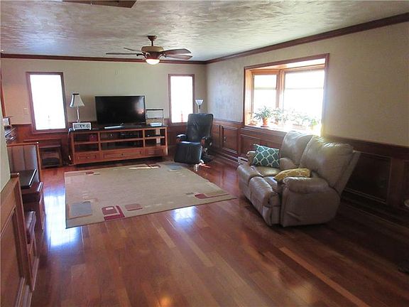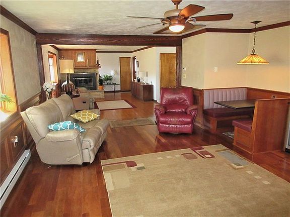 This very well maintained ranch has a lot to offer from the huge living room with wet bar, wine cooler, 2 bay windows, stone wood burning fireplace with heatilator & mantle, crown molding with wains coating. Dining room has a bay window & is open to the kitchen & den/office. Kitchen has large pantry & plenty of cabinets. Den has 3 skylights, 2 sliding glass doors leading to the 26 x 26 ft omni stone patio, wood blinds, wood beamed ceiling, & is currently used as office. There are hardwood floors throughout & plastered walls & ceilings. Main bathroom has jacuzzi tub & ceramic tile floor. Family room has a brick gas fireplace with mantle, built in cabinets, ceramic tile floor, crown molding, wood beamed ceilings, wains coating & recessed lighting, also full bath with shower & a door leading to the back yard. Heated 32x16 ft in-ground swimming pool. The 30x27 ft 2 story insulated detached garage has 200 amp. electrical service & gas furnace, & 2nd floor was a wood shop. Must see!!