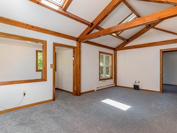 If you're looking for a unique home this one is sure to please. A gorgeous post & beam interior you've got to see. This stunning home offers an open floor plan kitchen, living room and dining area. All the rooms have cathedral ceilings, even the bedrooms. Stainless steel appliances. The master bedroom is at the lower level offering a walk-in closet, half bath with laundry hook ups. The French doors off the dining area are Anderson doors that open to the two tiered deck and back yard. The home offers central vac and electric garage door opener, Sellers have FRESHLEY PAINTED the entire interior, installed NEW carpet throughout, updated the bathroom, NEW front door, NEW storm door, NEW tiled entry way. New gutters and a 10 year young roof.