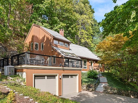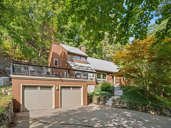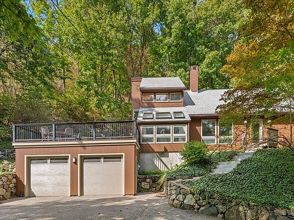 Contemporary oasis overlooking Lower Vine Brook Conservation area & only a stroll to Lexington Center & Fiske Elementary school. Must see this 5 Bed, 3 bath, 2 office home perched on a hill offering seclusion and privacy. The open spaced living room/dining room with fire place gives the feeling of solitude with a full view of wooded trees. Raised deck outside. Two bedrooms are conveniently located on the main level along with a first floor office. The second floor has 3 additional bedrooms one of which is the Primary bedroom with private bath. A second floor office is perfect for work at home opportunities. A spacious laundry room with linen closet is conveniently located on the second floor. This elevated contemporary home is surrounded by a wooded lot & set back from the street, abutting the exclusive Merriam Hill neighborhood. A sizable underneath 2 car garage allows easy access to the home from the ground level. Move-in ready. OH Sat & Sun 2-3:30pm