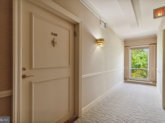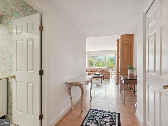 Welcome to Grays Lane House and this spacious ( over 1800 square feet) 2 bedroom, 2 full and 1 half bath on the third floor. This is a split floor plan with the Primary Bedroom and Bathroom on one side and the 2nd Bedroom and Bathroom on the other side- perfect for privacy for everyone. This condo has a beautiful Entry Hall, Hall Closet and Powder Room which flows naturally into the open and sun-filled Living Room and Dining Room. Beautiful new hardwood flooring in Entrance hall, Living Room and Dining Room. There is a nice sized terrace off of the Dining Room. The Kitchen has its own entry door from the hallway and a large Laundry Room with a full sized washer and Dryer .Each Bedroom has its own. en-suite bathroom. The Primary bedroom has a large walk-in closet, plus a make-up area right outside the primary bathroom. This condo has beautiful built-ins throughout. There are ample closets and storage throughout the unit. This unit has been freshly painted and is light and bright. Grays Lane House features on site maintenance, 24 hour doorman security and an underground well-lit parking garage,. It is located in Northside Haverford-,walking distance to the train, restaurants, shopping and easy access to major highways. Enjoy carefree living in this beautiful condominium ! Buyer is welcome to do inspections but this condo is being sold in 'as is' condition.