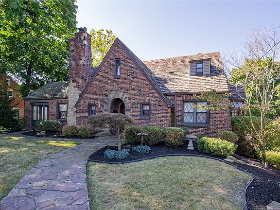 Classic Clinker brick architecture with incredible charm & character with over 3200 sq ft of living space on all floors and enclosed porches. the formal living room has poplar judges panels with built in bookshelves, rich hardwood floors, crown molding, cozy side porch w/ceramic tile floor and jalousie windows. The din rm has crown molding & opens to the kitchen with granite counters, stainless steel appl, heated 12x18 tile floor that opens to former side porch now laundry room w/front loading Samsung W/D. 1st flr master bedroom & adjacent 4th bedrm or in home office both w/crown molding, massive 2nd floor bedrms with incredible closet space and 15x7 play room/walk in closet that has 2 storage rms under the eaves. The 2nd flr hall laundry chute to basement. The massive game room has new ww/10/2023 and a built in bar with plumbing and adjacent 1/2 bath, 10x08 former kitchenette by fplc & to the left of the basement stairs is the13x9 music room that was previously insulated for sound.