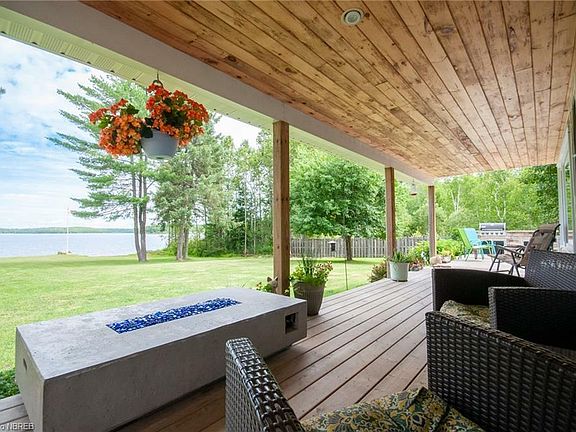 Welcome to this stunning waterfront family complex on beautiful Wasi Lake. This property is sure to please with a bright, modern and open concept 1,980 sf, 3 bedroom, 1.5 bathroom, 2 storey home with nearly every room featuring gorgeous lake views. Exterior wrap around covered deck and outdoor stone BBQ area, large and level family friendly lot with your very own private sandy beach & aluminum dock. The ultimate 32' x 50' triple bay garage with in-floor heating, high ceilings and bonus loft area! As well as a detached 1.5 car storage shed/garage. Situated at the dead end of a quiet road, one can enjoy the beauty and tranquility of Northern Ontario waterfront living at its finest. Enjoy safe boating, fishing and winter snowmobiling at your doorstep and an abundance of local wildlife. Minutes from 18 hole golf course, 10 min to Powassan, 25 min to North Bay and 3h North of Toronto. This is a great property to kick back and relax at or to host friends and family. There is much more here than meets the eye so come take an in depth tour to see all that this amazing property has to offer!