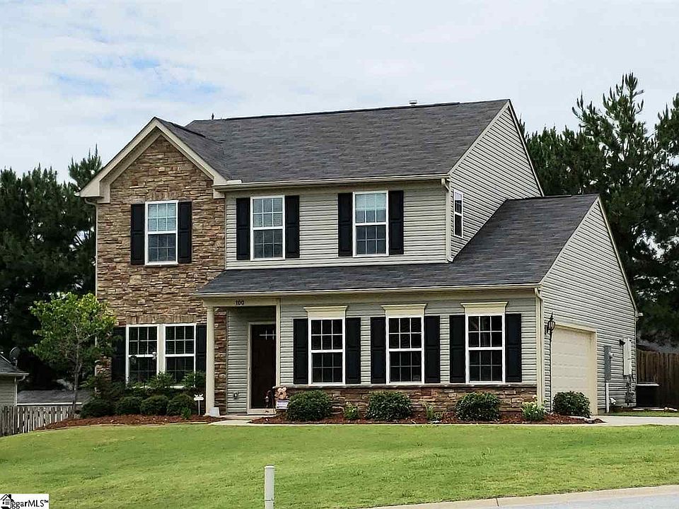 Your family's next home is right here at 100 Hamilton Court! Enjoy plenty of space with 4 bedrooms, 2.5 bathrooms, a large and open kitchen/dining/living area, 2 car garage and a bonus room off the foyer perfect for a dining room, office, den or play room! This home is situated on a large and level corner lot with a rare side entry garage and a fully fenced backyard. The kitchen features plenty of counter and seating space with a bar and a large peninsula, all granite. The kitchen opens to both the dining area and living room, excellent for families and entertaining. Step onto the patio from the dining area and enjoy the excellent back yard with plenty of outdoor space. The location is hard to beat in this sought after Easley neighborhood with great schools and close proximity to shopping and recreational facilities. Come make 100 Hamilton Ct your new home today!