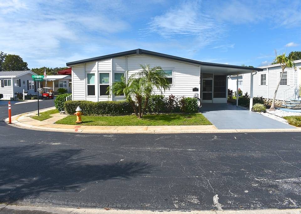 This 2 Bedroom, 2 Bath Home is on a Beautifully Landscaped Corner Lot in Island In The Sun, a Premier 55-Plus Community in Clearwater, Florida. The Park is less than 8 Miles to the Beach! The Home has Maintenance Free Vinyl Siding, Vaulted Drywall Ceilings, Double-Pane Thermo Windows, Installed in 2016. The Central Air and Heat was Installed in 2011, and a New UV Lite was Recently Installed in the AC. The Membrane Roof-Over was Installed in 2013, with a 30 Year Warranty, and New Struts and a Vapor Barrier was Installed in 2017. The Home has Newer Awnings, Room Darkening Shades Throughout, and Newer Laminate Floors installed in 2010. The Spacious Living Area has Laminate Floors, Plenty of Windows including a Bay Window, Vaulted Drywall Ceilings, a Ceiling Fan, and has a Separate Entrance to the Side Yard. The Kitchen has Newer Cabinets and Countertops Installed in 2018, the Stove and Refrigerator, New in 2015, and the Dishwasher and Garbage Disposal, New in 2017. The Kitchen has a Breakfast Counter, and a Ceiling Fan. The Formal Dining Area is right off the Kitchen and is a Great Space to Entertain. You have Extra Storage Cabinets in the Hallway right off the Dining Area. The Guest Bathroom has Porcelain Tiled Floors, an Updated Vanity, and a Tub-shower Combo. The Guest Bedroom is the Perfect Space for Visiting Family and Friends. The Spacious Master Bedroom has a Walk-in Closet, Laminate Floors, and a Ceiling Fan. The Master Bathroom has Porcelain Tiled Floors, and a Walk-in Shower. The Front Loader Washer and Dryer are located in the Hallway when you Enter the Home from the Florida Room. The Florida Room has Vinyl Windows, with an Everguard PVC Roof Added in 2008, and a Large Attached Storage Shed. ISLAND IN THE SUN is a Premier Resort Style 55-Plus Community, located in Clearwater, FL. The park has a great location! It is situated in an Upscale quiet Country Living Area and is close to Beaches, Parks, Trails and Golf Courses and is surrounded by Tropical Nature. There are Shopping Centers, Restaurants, and Healthcare Institutions close by and the bus stop is right in front of the park. PARK AMENITIES include a Junior Olympic size Heated Saltwater Pool, Spa, Shuffleboard, Horseshoes, Bocce Ball, Pickle ball, Billiards, Clubhouse, Gym, and Nature Area. PET FRIENDLY - 2 Pets less than 16" at the shoulder. LOT RENT of $860 a month includes lawn and all the Park Amenities. ---------------- CASH ONLY -----------------