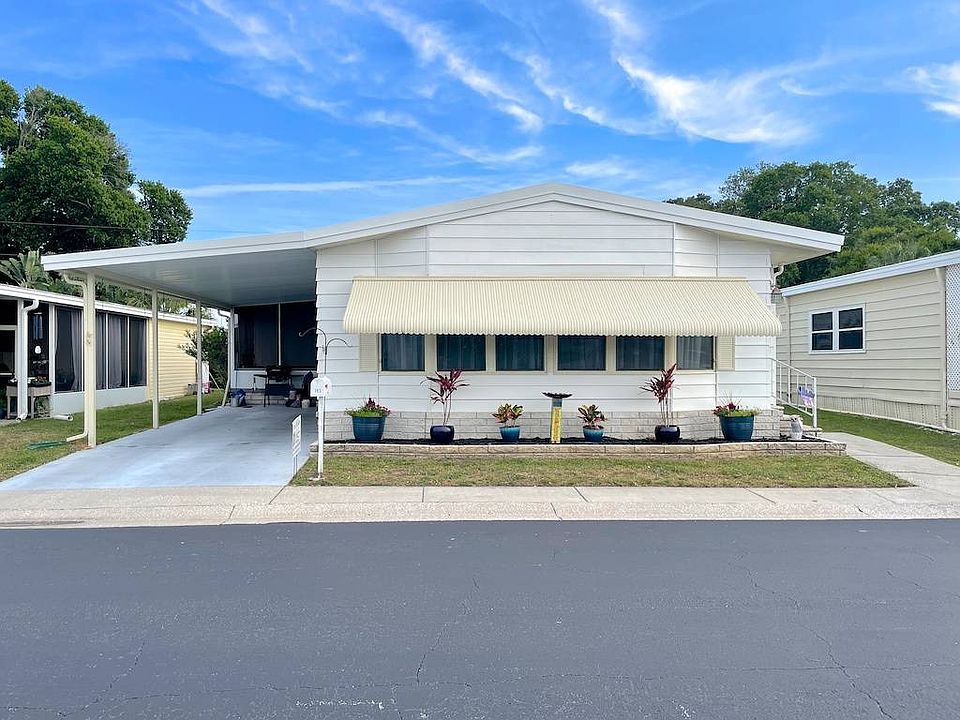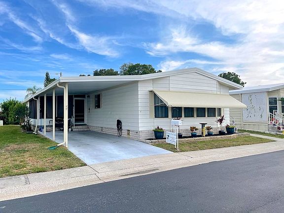 This Spacious and Updated 2 Bedroom, 2 Bath Palm Harbor Home is in Island in the Sun, a Premium 55-Plus Community in Clearwater, FL. This Large 1482 sq. ft home has been Renovated in the Past Year. The Home has New Flooring throughout, a New Kitchen, Updated Guest Bathroom and Updated Plumbing. The Home has been Freshly Painted Inside and Out and has been Termite Treated and has a Transferable Warranty. The New Membrane Roof-Over was installed in October, 2021. This Beautiful Spacious Home has Vaulted Drywall Ceilings and New Wood Looking Vinyl Floors. The Living Area flows into the Dining Area which flows into the Kitchen for easy entertaining. The Home has Plenty of Windows to filter in the Natural Light and Tons of Storage. The Updated Kitchen is a Chef's Dream with a New Kitchen Island with a Breakfast Bar, Granite Countertops, all New White Cabinets and a Glass Tile Backsplash. The Stainless Appliances are all New. The Kitchen Area is also Open to a Keeping Room and a small Office Area. The Laundry is in the Home with the Washer and Dryer in the Hallway beside the office. The Guest Bedroom is Large enough for a king-sized bed and has a good-sized closet. The Guest Bathroom has been Updated with a New Vanity and Sink and a New Walk-in Shower. The Spacious Primary Bedroom Suite is Large enough for a King-sized bed and has 2 Closets including a Large Walk-in Closet. The Large Attached Bathroom has a Double Vanity and a Walk-in Shower. The Screened-in Patio has New Blinds and a New Screen Door. This is a great place to enjoy your morning coffee or a glass of wine in the evening. There is a Large Shed behind the Patio for additional storage. There is a Patio in the backyard that would be perfect place to grill out. ISLAND IN THE SUN is a Premier Resort Style 55-Plus Community, located in Clearwater, FL. The park has a great location! It is situated in an Upscale quiet Country Living Area and is close to Beaches, Parks, Trails and Golf Courses and is surrounded by Tropical Nature. There are Shopping Centers, Restaurants, and Healthcare Institutions close by and the bus stop is right in front of the park. PARK AMENITIES include a Junior Olympic size Heated Saltwater Pool, Spa, Shuffleboard, Horseshoes, Bocce Ball, Pickle ball, Billiards, Clubhouse, Gym, and Nature Area. PET FRIENDLY - 2 Pets less than 16" at the shoulder. LOT RENT of $911a month includes lawn and all the Park Amenities. -------CASH ONLY -------