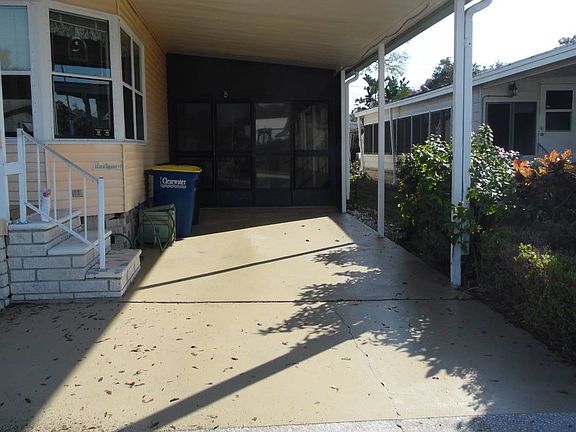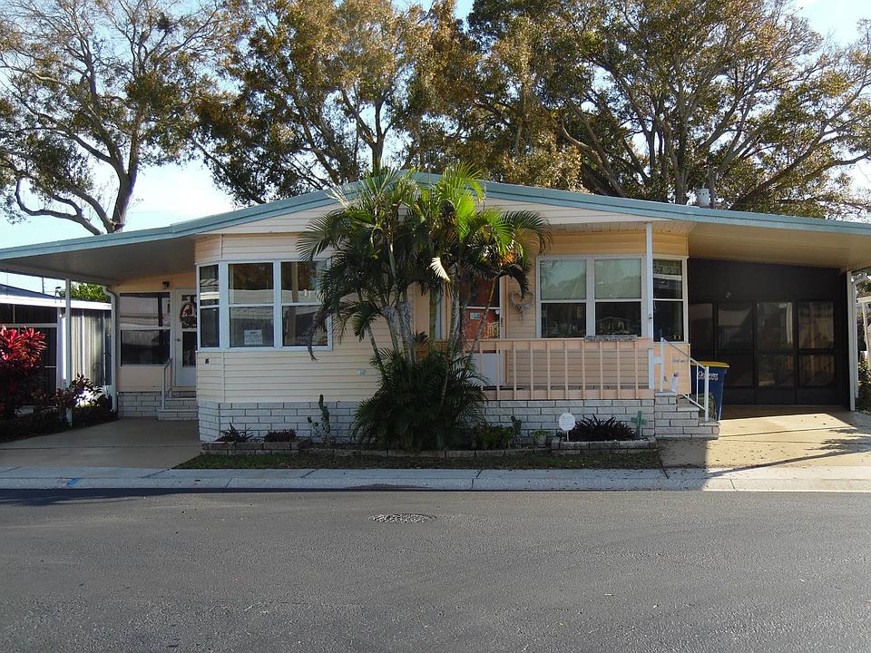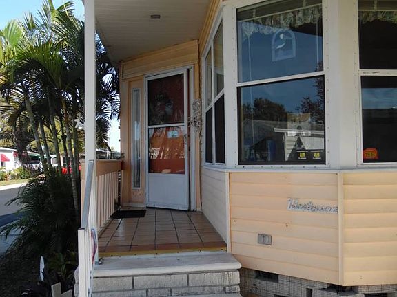 This charming home in a 55 plus community features two carports and a garage with a wheel chair lift. This home has many charming surprises and comes furnished. Entering the home through the living room there is an office immediately to the right. In the living room there is a pull down projector screen for a projector tv. The living room flows into the dining area. To the right of the dining room is a kitchen with plenty of room. To the left of the dining room is a spacious bonus room. Down the hall is a laundry room with a washer and dryer. The guest bath has one sink and a tub/shower. The guest bathroom has plenty of closet space. The master bedroom is spacious with an en suite bath which includes a garden tub, double sinks and a separate room with the shower and toilet. A nice workshop was added on to the back of the home. The back yard is spacious and contains a shed. Storage is not an issue with this home. Lot rent is $824 a month which includes lawn care. Island In The Sun has dog restrictions.