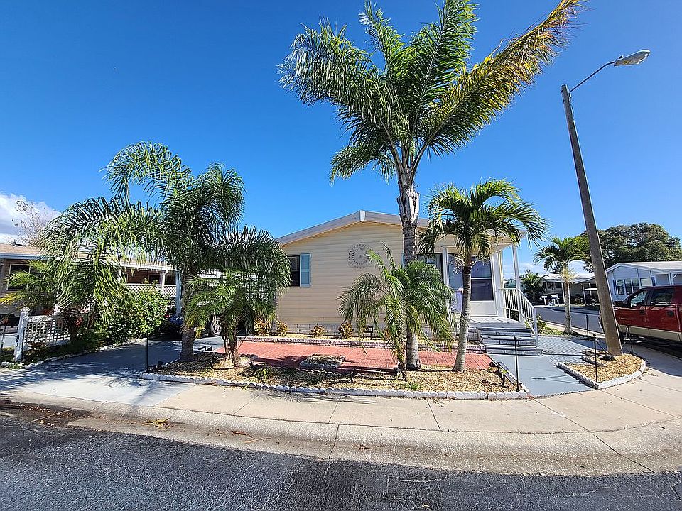 This beautiful 2 bedrooms 2 bath home sits on a corner lot and has a large carport with storage, and a screened patio. It features metal roofing only 8 years old, new central AC unit 8/2019, vinyl siding, recently painted exterior, gutters, indoor laundry room, cathedral ceilings, ceiling fans, skylight, walk-in closet, patio room with windows and screens, has window a/c units and central air, refrigerator, built-in oven, induction stovetop, new garbage disposal. Dishwasher, clothes washer & dryer included. This beautiful home in a 5-star park, a 55+ community that sits on a corner lot and comes mostly furnished. The Master bath has a garden tub with a separate shower. Large Kitchen area with built-in oven with an induction stovetop and comes with refrigerator and dishwasher. The Patio room has screens and plastic-covered windows to make it comfortable all year. Current monthly dues are $889. Park Offers Spa, Whirlpool, Bocce Ball, Tennis Court, Shuffleboard Court, Billiard Room, Library, Laundry Facilities, Fitness Center, And huge clubhouse. All listing information is deemed reliable but not guaranteed and should be independently verified through personal inspection by appropriate professionals. Integrity Mobile Home Sales cannot guarantee or warrant the accuracy of this information, measurements or condition of any property. Measurements are approximate. Lot rent is subject to change.
