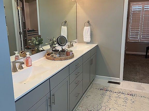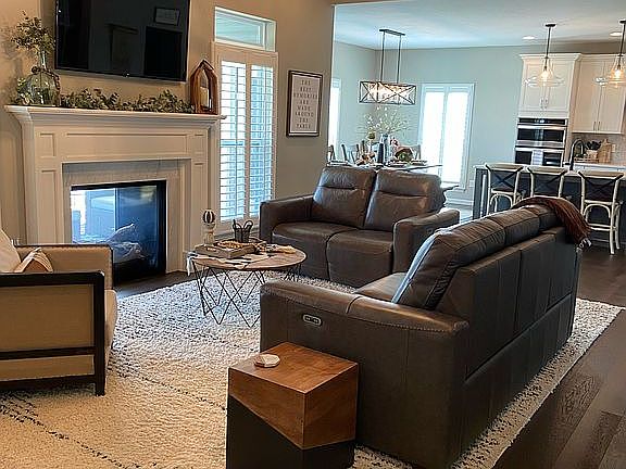 This 4 BR 3.5 BA home offers a spacious open floor plan concept with Great Room on looking Breakfast Area and Kitchen. Double Sided Fireplace from Great Room to Covered Deck bringing the outdoors in with a Raised Ceiling, Cross Beams and Custom Dry bar set up for amazing gatherings! Second Floor offers an over sized loft with plenty of sunshine from the operable skylights and additional window wall. Spacious Bedrooms and two additional baths. This home is highly appointed with custom cabinet layouts, quartz tops at the kitchen, 9ft first floor walls, walk in pantry, built in mud/drop off area at garage entry, and large first floor Master Suite and Laundry! Recent Additions include: Custom built-in shelves in 3 car garage, Custom Laundry shelving, Custom Pantry, Custom Master Closet and Shelving, Plantation Shutters throughout Main level, Alarm System and Sprinkler System