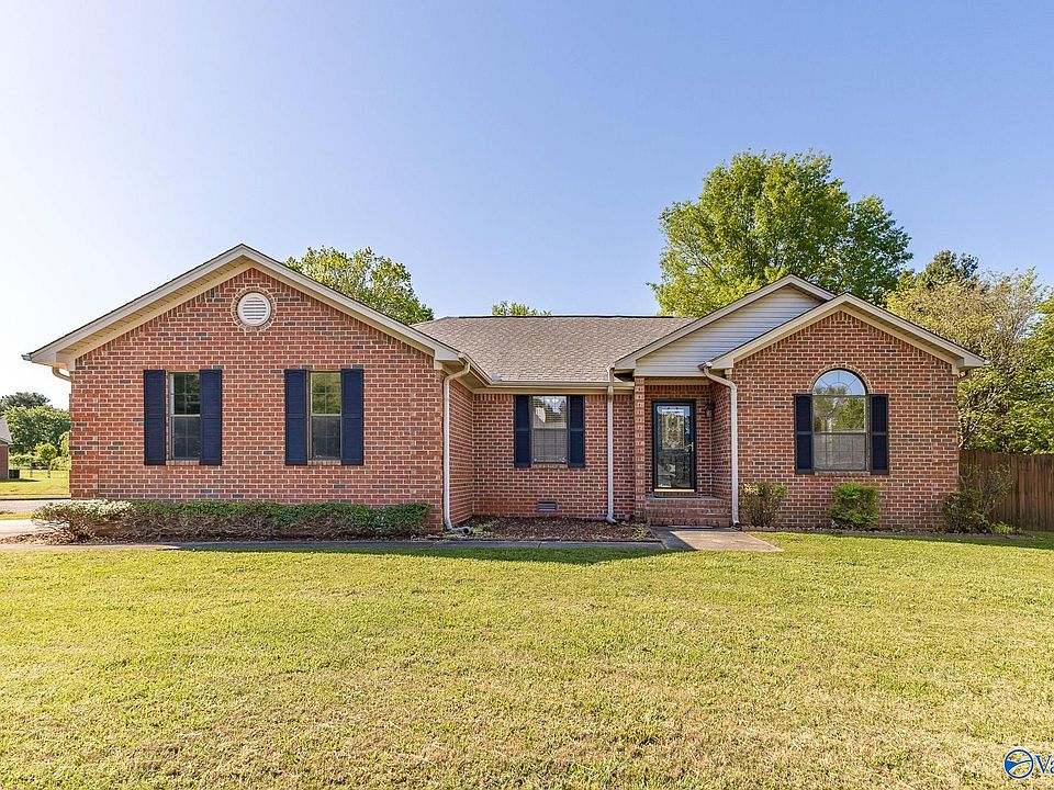 Welcome HOME to 100 Happy Circle! Must see, move in ready and completely renovated! Brick ranch on large corner lot w/privacy fence located in Springhill Farm subdivision. New roof 2023, new flooring, freshly painted, quartz counter tops, new light fixtures, shutters, blinds and gorgeous updated master bathroom. Get ready to enjoy a wood burning fireplace in the great room or an evening on the enclosed back porch!