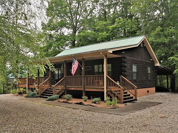 CABIN IN THA WOODS!! Here it is! That peaceful cabin in mountains and that private setting you long for! Located just minutes to the lake and just 1 mile off the main road, this cozy cabin is ideal for your weekend get-aways! Open surroundings and adjoins USFS, so there is plenty of room to roam! Relax on the front covered porch or have a dance party on the 24x40 open deck that boasts a nice mountain view! Inside, you'll find 2 spacious bedrooms, a full bath with stack washer/dryer and an open floor plan. The stone gas log fireplace provides ample heat for those cozy cool evenings! This cabin is in PRIME condition and has been used for a 2nd home! The partial basement is ideal for storage of boats and rafts! This is a private little development, with only 1 other house and this house is at the end of the road, so there is no driveby and the road is gated! Yep, its just PERFECT!