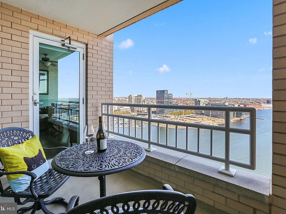 Spectacular Inner Harbor views from the 23rd floor enhances sophisticated urban living in this lovely 2909-square-foot condominium. This beautiful two-bedroom + den, two-and-a-half bath condo in the amenities-rich Harborview Towers offers a spacious open floor plan for entertaining and day-to-day living. Two balconies and wrap-around windows provide a bird's eye view of the Patapsco River, Harbor East, the Harborview Marina, the Francis Scott Key Bridge, cruise ships docked at the Maryland Cruise Terminal, and BWI landing patterns. Like fireworks? This is your front-row seat to New Year's Eve and 4th of July celebratory sights - incomparable views of the fireworks, the Lighted Boat Parade, and Fleet Week ships. Elegant materials with hardwood floors in the entertainment areas, an electric fireplace, an oversized gourmet kitchen, separate laundry room/pantry, and a beautifully renovated owners' bath add to the enjoyment of life at 2302. The second bedroom Murphy Bed closet system allows ample space to add a work-from-home area, and the separate den located off the living room offers spacious built-ins for storage/office or relaxed TV watching. Building amenities include indoor and outdoor pools with locker rooms and showers, a multi-purpose health club with circuit weight machines, free weights, ellipticals, bikes, and treadmills, and multiple party/entertainment rooms with billiards and catering kitchen. A Board Room for family and or business meetings, a walled grille-garden facing east to the river and an attentive 24/7 front desk with concierge service adds to your enjoyment. In-building guest suites are available to rent by reservation, adjacent marina with slips available to rent, a gated underground garage......And located just a stone's throw from all the Inner Harbor has to offer - restaurants, events, attractions, concerts, parades, farmers' markets......the list goes on. This is the one you've been looking for!