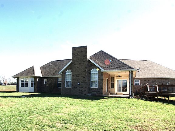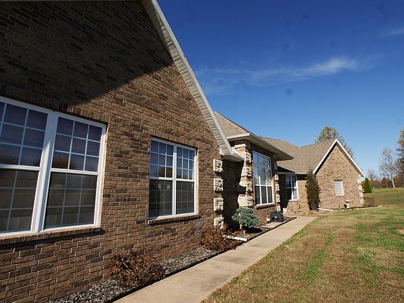 This beautiful, spacious brick and stone home is a one level with 3 bedrooms, 3 baths, and a 3 car garage on 3.24 acres. It's located in the country just outside of Ozark in the Ozark East School District, but close to restaurants and shopping. It offers a large flat, fenced yard with lots of outdoor living, raised gardens, and a deck ready for a pool or to use alone. The home is super clean, has large rooms, and has been meticulously maintained. It offers an open concept floorplan with many updates such as the roof, hot water heater, solid surface walk- in shower with a bench, fans and light fixtures, paint, carpet, insulated garage doors, fence, toilets, pellet stove, cook stove, AC and furnace that are all 4 years old or newer. The interior offers vaulted ceilings throughout, lots of large windows and natural light, neutral colors, hardwood flooring, and lots of room for entertaining. The kitchen features lots of cabinets with a tile backsplash, newer stainless appliances, granite countertops, a kitchen nook, a breakfast bar, a new double convection oven with a built in air fryer, and a formal dining room. The formal dining room could make the perfect home office. The primary suite offers a large bedroom and bath, double walk-in closets, a large jetted tub, double sinks, and a granite countertop. The guest bath has dual sinks as well. The large laundry room with a wash sink doubles as a half bath. A portion of the third stall in the garage has been converted into a heated and cooled bonus room which is also perfect for storage, a man cave, and can easily be converted back. A security system with multiple cameras and a doorbell camera has been added. This one won't last.