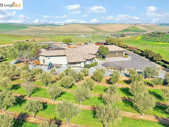 AMAZING LOCATION: Hidden Private BEAUTY. Iron Gate 1 4 mile entry to Hilltop GEM. View Antioch, Rio Vista, Brentwood, Stockton to Sierras. Grand Beam entry. Fanned Insert Fireplace, Bar, Entertainment. Heighted Windowed and double door view to yard. Spectacular Sunsets. CRAFTSMANSHIP!!! CHEF'S KITCHEN: Upgraded Dream Custom, Granite island counters, custom cabinets, pantry, marble. IN-LAW LIVING: Room and Bedroom, shower, wood stove. MASTER SUITE: Walk-in glass shower, closets, oversized jetted tub, granite and marble. BACK YARD: Entertainment, Bocce Putting. Room for children adult. 4 open access to house. Large access gates. Lanai Bar: open glass doors, potential office sitting room entertainment. Overlooks Olive Grove to views. DETAILS: (MUST SEE VIDEO): Irrigation, 2 wells. 5, 000 gal water storage. Car port, drive through garage, water softener heater, detailed fencing, wood details throughout. Oversized 3 car garage and additional storage. A Must See of Pride and Beauty.