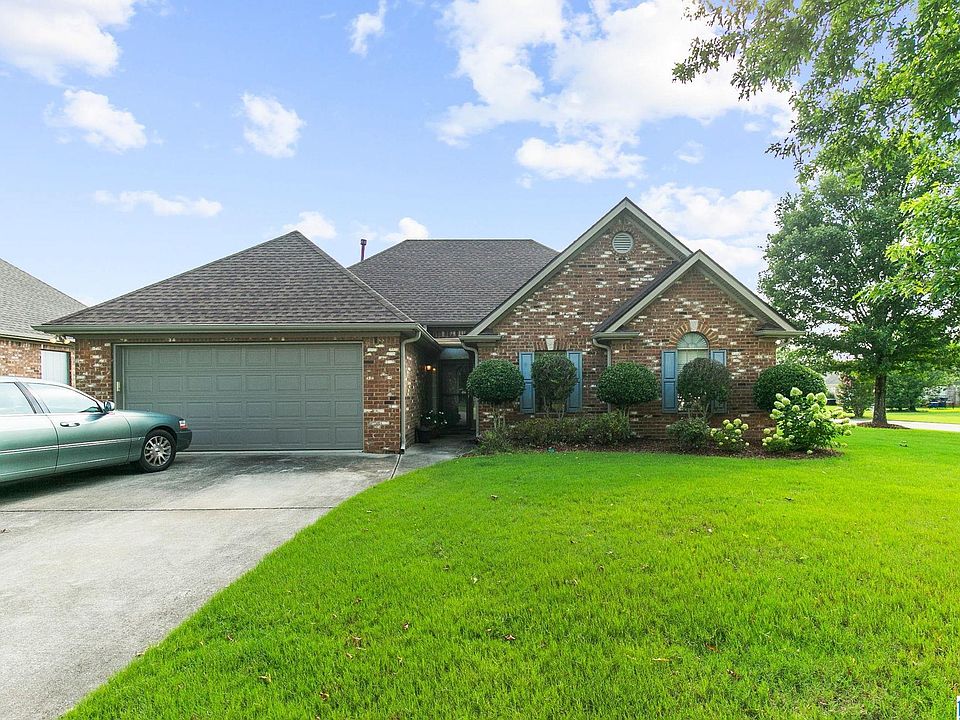 Beautiful brick home on a large corner lot, gorgeous, manicured lawn. As you walk in the front door, you see a foyer opening into a large great room with a ventless gas log fireplace and backdoor leading you to a covered screen patio large enough to entertain guests. Kitchen with lots of cabinets, tile counter tops and back splash. Mini office between great room and kitchen. Dining room with door leading to a side covered patio. Large Master bedroom. Master bath has separate shower and large garden tub with jets. Laundry room off the garage. 2 Garage with Safe room/storm shelter that leads into laundry room. Backyard is fenced and has workshop / storage building. Convenient to Interstate 65 and just minutes from Alabaster Promenade.