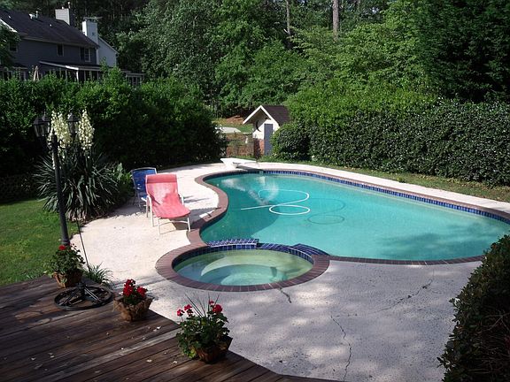 3 sided brick Colonial Home. Eat in kitchen and also dining room. Hardwoods and tile through out. Carpeting in 3 bedrooms. All bedroom's could accomodate a queen size bed. Master bedroom has 2 closets one of which could possibly be a nursery. Over sized office with french doors. Plantation shutters on front and side windows. Also has partial finished basement. Inground swimming pool updated 2008 new pump and salt water system. Exterior paint 1 year ago. Oversized 2 car garage. Heating and air system (Trane) is 3 years young and also roof is 3 years young! Neighborhood Description This is a great neighborhood. Very diverse young and older. Walk to High School and watch your North Gwinnett Bulldogs play....