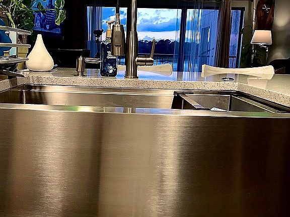 3rd Floor Unit 305. Fully renovated top to bottom in 2020. Diamond custom kitchen cabinets, soft close doors with 3 lazy Susan’s (upper and lower corners). Glass tile backsplash, Sparkling quartz countertops w/extended counter level seating and desk area. Stainless farmhouse/apron sink & appliances. Walk in pantry. Custom doors. Renovated bathroom with custom tiled walk-in shower, built in seat and oversized niche and glass doors. New vanity with quartz top and oversized framed mirror. Added built in storage behind door. Shiplap ceilings in living room, bedroom, bath, kitchen tray & all closets. Continuous textured waterproof LVP flooring throughout... (closets also). This particular unit has an additional walk-in master bedroom closet. Entire home has shaker style moulding top to bottom. New 60A tankless hot water heater and stacked washer/dryer. Upgraded to pex plumbing in bathroom, kitchen and utility closet. Balcony has stunning west-side water views of the new marina, sailboat mooring field and Spanish Wells waterfront homes from the kitchen & your sofa. All furniture is available to make it turnkey