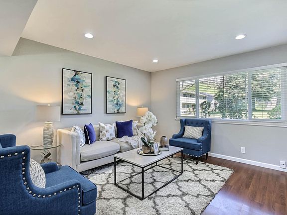 Lovely upgraded 3/1.5 townhome in a quiet and serene community. Two-story end-unit with many modern updates. Faces east with a gorgeous hill view. Open style floor plan. Fully remodeled half bathroom. Recently changed the carpet, central heating, water heater, toilets. The front door is facing the community's spacious central park and playground. New tile flooring in kitchen and bathrooms. The carport gives easy access via the private backyard. HOA fee of $315/mo covers water, sewer, garbage plus maintenance and insurance of exterior, roof, and common area. Right off highway 680 and 237. Close to parks and trails. No rental restriction. Stay close to nature and enjoy all the convenience and good schools of Milpitas!