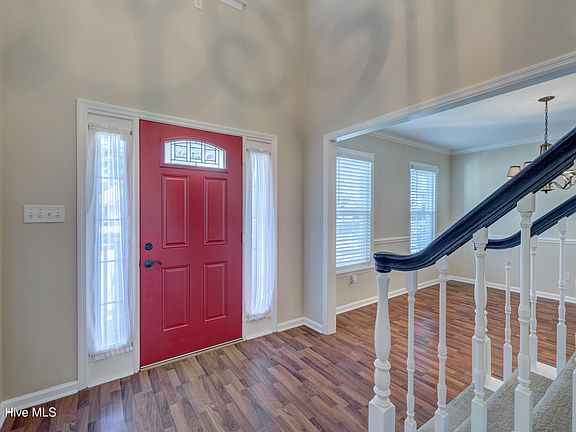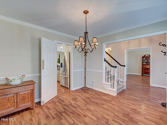 40 MINUTES TO NORTH TOPSAIL BEACH. Welcome to this beautifully maintained, traditional two-story home boasting over 2,300 square feet, located on two spacious lots within the town limits of Richlands. The lower level features formal living and dining rooms, perfect for entertaining. The family room is anchored by a cozy gas log fireplace, creating the ideal atmosphere for relaxing evenings.