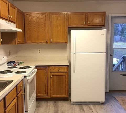 This home is in good move in condition and sits on a large corner lot with ample parking in driveway and view of water off a cove. Front Living Room off the covered front entry. Center Hallway and 3 Bedrooms to include the Primary Bedroom with Private Full Bath and Walk in Closet. The large Eat in Kitchen comes with a newer Range/Oven, Newer Refrigerator, Newer Range Hood, Dishwasher and Newer Flooring. There is a Side Entry off the gravel Driveway for direct access into the kitchen. A Laundry Closet features a Washer and Dryer. Newer tub fixtures and newer fixtures in the hall bath. Tenants are responsible for Vehicle ID/Decal Fees to Lake Caroline Association for a onetime fee which is refundable if all passes are returned at move out to the Homeowner's Association in Lake Caroline. Amenities include Pool, Playground, Clubhouse and Lake Access. This is a no pet property.