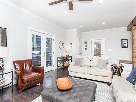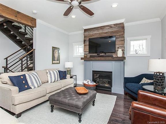 Beautiful 4 bed 3 & 1/2 bath home located in the highly desirable Historic Montford district. House features tons of custom details and charm throughout! Walk in front door to gorgeous wood floors and open concept floor plan. Living room features fireplace with reclaimed wood and French door granting access to deck. Stunning wood beams frame the dining area and kitchen. Bright kitchen features granite countertops, subway tile backspash, kitchen island with breakfast bar and stainless steel appliances. Master bedroom suite with balcony and walk in closet. Lower level provides a wonderful family room with access to stone patio.
