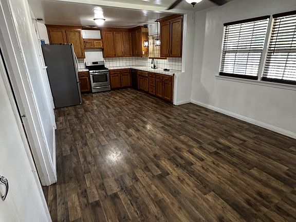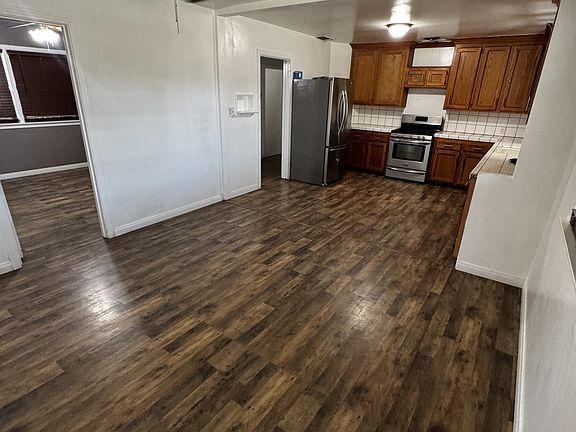 Wow Spacious 3 bedroom 1 bath home on a corner lot with 2 car garage and RV parking! This beautiful North Bakersfield home has an updated kitchen and an inviting living area with fireplace. Save money on electric because this home has solar! Bonus living area in finished basement. Come take a look and apply TODAY