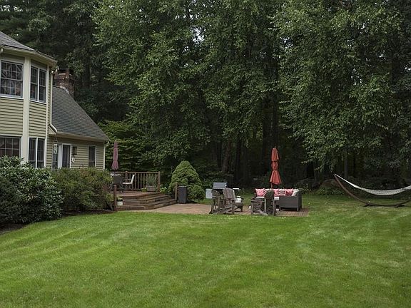 Meticulously cared for and beautifully appointed oversized cape style home featuring a grand foyer with an elegant curved stairway! A gorgeous formal dining room and a stunning office/living room with built in bookcases and drawers and recessed lighting. The kitchen is spacious with granite countertops, a center island, walk-in pantry and a large breakfast room! Bright and sunny cathedral ceiling familyroom with a fireplace and a french door leading to a deck and patio area and private, wooded yard! Laundry room and half bathroom complete the first floor. The front to back master bedroom suite has a cozy, curved window seat, walk in closet, hardwood floors and a four piece bathroom with double sinks and whirlpool tub. The basement was recently finished with genuine barnboard accents and barn doors, granite mini bar with wine and beverage chillers and the workout room you've been looking for! Central air and 3 year old 16x12 shed. Conveniently located to routes 24, 138 and 495