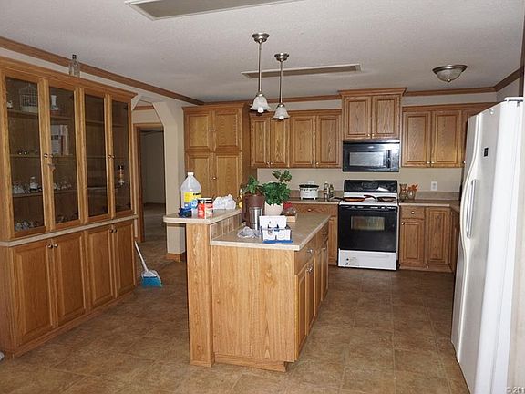 2008 Manufactured Home, 3 bedroom, 2 bath, large living w/fireplace, large kitchen w/appliances, breakfast bar and dining area. Spacious Bedrooms, Shop, Deck, Fenced 14 Lots, Storage Building, Storm Cellar, Carport. Lots of pecan trees.