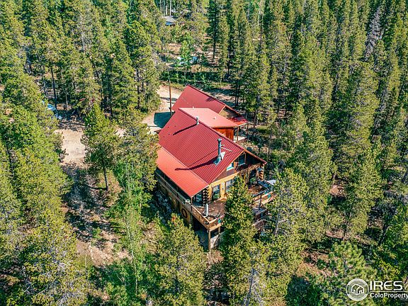 This picturesque log home sits on 2.5 stunning acres just a short drive from Nederland, Eldora & Black Hawk. A circular driveway, generous covered front porch & large mudroom greet you from this custom log home build on the market for the 1st time. Overflowing with charm this log cabin features tons of wood accents, beamed & exposed wood ceilings, wide plank floors & a cozy wood stove. Upper level is a private master suite with a spacious office area. The walkout basement is currently a huge workshop with 1/2 bath but could easily be finished to add more square footage, a 3rd bedroom or a guest/rental apartment. This flat and rolling property has been fire mitigated & offers many Aspens within a spectacular forest setting. Attached garage also has additional workshop space. High speed fiber for Internet, natural gas & county maintained roads! This is truly a mountain paradise!