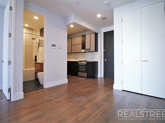 New, modern 2 Bedroom 1 Bath in boutique Bushwick building, chock-full of amenities, plus your own BALCONY! This extremely quiet, spacious 2 bedroom unit gets great sunlight via the floor to ceiling windows and is fully equipped with a beautifully renovated kitchen, including stainless steal appliances, a paneled dishwasher, and stone countertops. The modern bathroom features sleek, artistic tiling, a large vanity, and a deep tub with a rain fall shower head. The bedrooms are both queen sized and sunny. Plus plenty of closet space and central AC! Located in a new construction boutique building right in the heart of Bushwick near the M&J subway lines. And smack dab in the middle of all trendy and hot spots like Bushwick Public House, Bosa Nova, Birdy's, Mood Ring, Hart bar, Bootleg Bar, Refugio, sunrise sunset and so much more. Building Amenities Include: Furnished Roof Deck Balcony Gym Laundry Room Lounge Pets upon approval Guarantors welcome