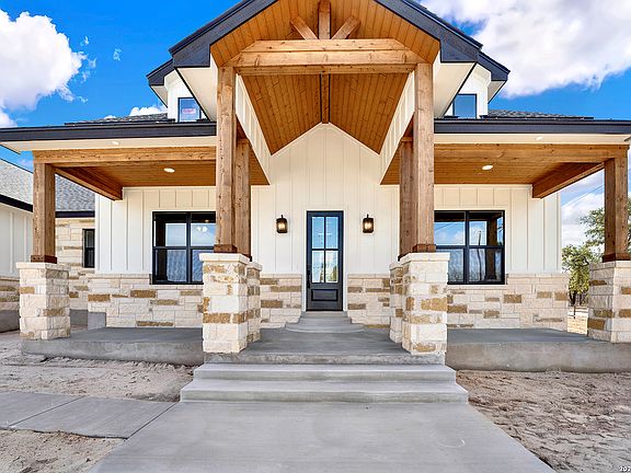 Beautifully constructed, brand NEW build in Hondo Ridge neighborhood within La Vernia ISD! This 4 bedroom, 2.5 bathroom home offers a bright, open layout with lovely upscale finishes throughout. The Grand Living room has a high cathedral ceiling with wood beams and is complete with large windows for all the natural light, a floor to ceiling rock fireplace surrounded by built ins, open to the kitchen & dining room. Gourmet kitchen features a Quartz island w/ lots of cabinets, custom elevated cabinetry and a large walk in pantry. Master suite is decorated with a wood slatted ceiling, large walk/in closet, walk/in shower and soaking garden tub. And to top it off, master closet has direct access to the large laundry room with counter space and cabinets! Garage also includes electric car plug in. This gorgeous home is complete and move in ready now, come make it yours!