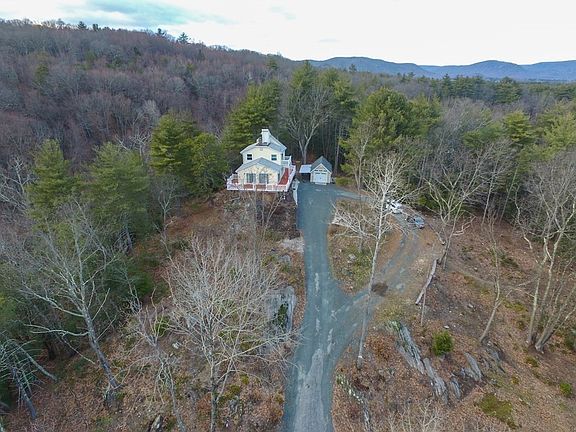 Nature lovers dream in this unique, secluded contemporary with wrap around deck overlooking woods & mountains. Roof top deck is perfect for watching sunsets over the mountain range or star gazing. Surround yourself on 5.31 acres of COMPLETE PRIVACY with a true VT or ME off grid vibe nestled in the woods abutting protected state land as per GIS map. This flexible floor plan has a separate entry to finished walk out lower level/basement with common room with wood stove, full bath, 2 bedrooms, laundry you could easily add kitchenette which could serve as a guest suite. Large living room has sliders on 3 sides, pellet stove and access to giant wrap around deck overlooking complete serenity, formal dining room & updated kitchen & baths. Master has sliders to it's very own balcony too. This is truly a super unique property all the way around and is move in ready. Showings begin open house Sunday 2/12 from 12:00 - 2:00. Offers by Thursday please.