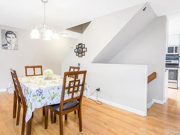 This terrific 2 bedroom Townhome in the Hillandale Village is filled with tremendous natural sunlight and private outdoor space on each level. The sunken living room with wood burning fireplace leads out to a private deck, great for entertaining. The kitchen includes granite countertops, stainless appliances and tile backsplash, large dining room with all hardwood flooring. The 2nd floor offers 2 bedrooms and hall bath. The primary bedroom has full bath and balcony with tree top views, wonderful any time of day. The lower level is finished with full bath, patio and private entrance, great for guests or family. Laundry room and storage just off the lower level. Additional features include; inground community pool, playground, assigned parking and guest parking