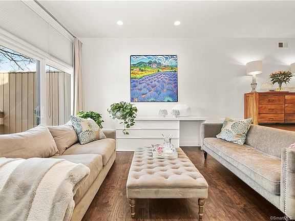 Enjoy easy living in this stylish 2 bedrooms, 3 full bathroom townhouse with finished walk-out lower level in the heart of Stamford. Some of the features include: updated kitchen and bathrooms with high end finishes, laundry conveniently located on the second floor where the bedrooms are located, 3 outdoor areas (deck, balcony and covered porch), reserved parking, abundant storage in the attic and lower level and a Smart home Nest thermostat. The main bedroom suite has a private balcony, vaulted ceiling and spa-like bathroom. This community offers beautifully kept grounds, pool, playground, plenty of visitor parking and a low HOA fee. The location is unbeatable as well. There is nothing to do but move right in!