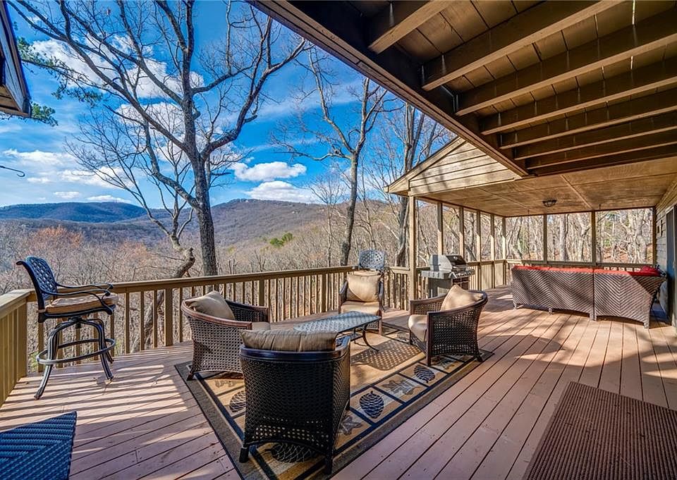 THIS HOME HAS A LONG-TERM RENTER IN PLACE FROM 9/1/25-3/31/26. This FULLY RENOVATED 4 bed 4 bath cabin in Big Canoe on a corner estate lot, totaling 3.42 acres is sure to wow you. Enjoy YEAR ROUND MOUNTAIN VIEWS! Freshly refinished WIDE YELLOW PINE HARDWOODS adorn the main floor and upstairs. Enjoy CUSTOM LUXURY TILED SHOWERS, and HAND-SELECTED CUSTOM GRANITE COUNTERTOPS in the kitchen. The CATHEDRAL WOOD BEAM CEILINGS on the main floor and upstairs are absolute show stoppers. All four bedrooms include their own ensuite full bathroom. Enjoy the Master bedroom and main guest room on the main floor, along with the dining room, kitchen, and main family room, which includes the cedar plank wrapped wood burning fireplace. The kids will love the loft area, with their own bedroom and bathroom. The final guest bedroom is located on the terrace level, also with its own completely updated bath. Enjoy the card table in the loft, adjacent an expansive mountain view, or the billiard room and foosball table downstairs, just steps away from the deck that runs the entire width of the house, complete with HOT TUB. On the main floor, enjoy your pick of covered deck, screen porch, or open air deck - perfect for family gatherings! The house enjoys a circular driveway, and is on a quiet street, while still only a couple of minutes from the marina and other amenities that Big Canoe offers. Home being sold TURN KEY other than a few personal items.