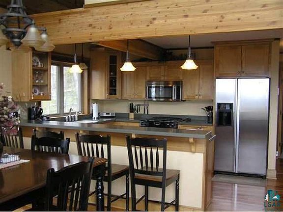Tucked ABOVE the Maple Ridge of the Sawtooth Mountains, enjoy Views of Moose Mountain AND Lake Superior! This Lindal Cedar Home with garage is all Top Notch! You will love the Lake Superior views almost as much as the interior of this gorgeous home featuring a huge master suite with walk in closet, gourmet kitchen and super decks! Plenty of space for family and friends, complete with a nice firepit for enjoying campfires!