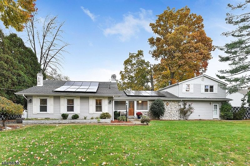 Sprawling expanded ranch w/ beautiful views and lots of privacy, plus in-ground pool. This 2,600 SF home features 3 beds, an office, 2.5 baths, LR, FR right off EIK. Updated EIK and baths. Live at a resort! Possibility to create an in-law suite with separate entrance, baths, LR and driveway. Oversized lot features a huge patio thru sliders in FR with direct access to in-ground pool. Also direct access to pool via sliders in EIK; LR sliders open up to a composite deck with pastoral views of the water and woods. Lots of closets and partial basement complete this spacious home. Newer windows. New roof 2004, solar panels installed 2012 - for reduced electric bills. New boiler and water heater in 2011. Walkable to NYC transportation and close to Little Falls restaurants, shopping and Montclair Univ.