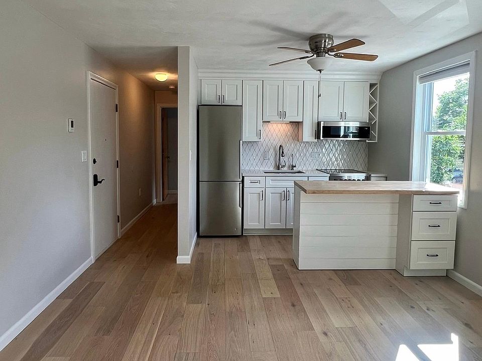 Newly renovated 1-bed 1-bath apartment, just one block from downtown Portsmouth! Available Now. This second floor unit is located above a quiet commercial business, overlooking Islington Street. It features excellent natural lighting, an open concept kitchen with ample build-in storage, stainless steel kitchen appliances, and hardwood floors, as well as a fully renovated bathroom and customizable modular bedroom closet, all installed in the past few years. The building also has a spacious backyard available for tenants to use for entertaining, grilling, gardening, etc. Online application completion required to schedule showings. Online application completion required to be eligible to schedule a tour of the property. Lease Duration: 1 year, unless otherwise agreed upon and documented by both renter and owner. Water, Sewer, Trash, and Plowing included. Tenant is responsible for Electric and Internet. No laundry on-site. Off-street parking space included, with additional first-come, first serve parking available for tenants and guests at night and on weekends. Renter is responsible for obtaining renter's insurance, if desired. Owner will not be responsible for any personal items lost, damaged or stolen from the property. Renters are expected to exercise common courtesy within all indoor and outdoor common areas and to all other tenants. Renters are expected to abide by all rules and regulations set by the Building Association By-Laws, By-Laws available upon request. No smoking allowed. No cats allowed. Dogs (large and small) are allowed for a $50 monthly pet fee. Dog must be reasonably socialized for the safety of the other tenants and dogs living in the building. All dog waste must be picked up and disposed of in the dumpster immediately.