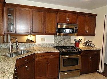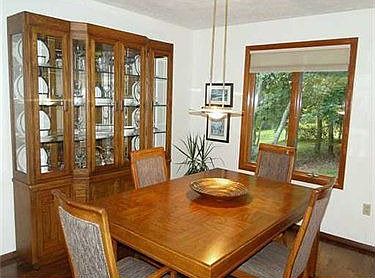 Vaulted ceiling in LR, open staircase*cherry kitchen w/granite countertops and backsplash*ceramic floor*stainless appliances*roof & HVAC 5 yrs old* 200 amp elec svc* refinished hardwood floors, new carpet* new gas logs in FR FP, raised brick hearth* sliding glass doors to 20x10 deck* private, useable yard* Driveway resurfaced 5 years ago* Laundry is part of utility room with workshop/storage* Many recessed lights, large windows* ROSE GARDEN POOL BOND IS AVAILABLE