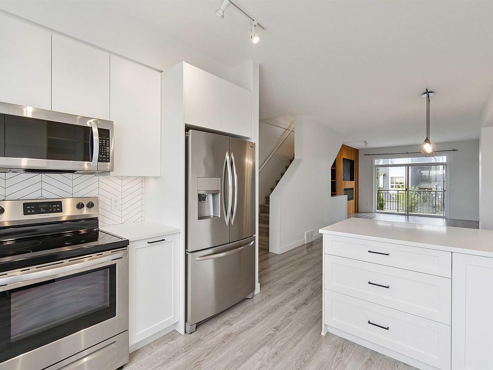 Live the lake life in this stunning 2 bed, 2.5 bath townhouse located in St. Albert's highly sought-after beach community of Jensen Lakes! Steps from the lake and vibrant amenities, this freshly painted home offers an upscale, low-maintenance lifestyle perfect for homeowners or investors. The open-concept main floor features white upgraded cabinetry, quartz countertops, and stainless steel appliances, flowing seamlessly into a bright living space with a cozy electric fireplace. Enjoy morning coffee or evening sunsets on your private balcony. Upstairs, find two spacious bedrooms, each with its own full bathroom, including a primary retreat with walk-in closet. The double tandem garage provides ample parking and storage. Ideally situated across from the Jensen Lakes complex—featuring Landmark Cinemas, the St. Albert Public Library, Canadian Brewhouse, KB&Co., and more—and within walking distance to two schools, this property offers unbeatable convenience and community.