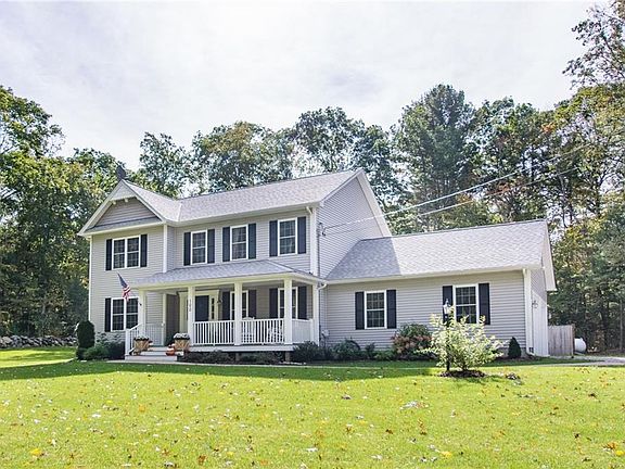 Pride of ownership in this meticulously maintained (3Bed/2.5Bath) House Beautiful worthy center hall colonial with front farmers porch. Built in (2016), this home offers a bright open floor plan to allow for versatile space planning and furniture layout. Keynote features include gorgeous hardwoods throughout the main living spaces, Living Room with fireplace and large extra Family Room space, Dining area with sliding glass door that opens onto expansive patio overlooking private landscaped backyard. A beautiful chefs Kitchen with shaker style soft close cabinetry, marble counter tops, stainless steel appliance package and oversize center island for entertaining. The (2nd) Floor layout includes a bonus home office or nursery space, (2) Bedrooms which include generous size closets for ample storage, a full Bathroom as well as the oversize Master Bedroom suite highlighted by a large walk-in closet and gorgeous Master Bath with dual vanity. The unfinished basement level features a tall floor to ceiling height perfect for future internal expansion capabilities - rec' room OR workshop. High efficiency mechanicals, Central A/C and attached (2) Car Garage. The house is nestled on a private (3) acre wooded Lot with stone walls and minutes to the highways, shopping, etc. An absolute gem!