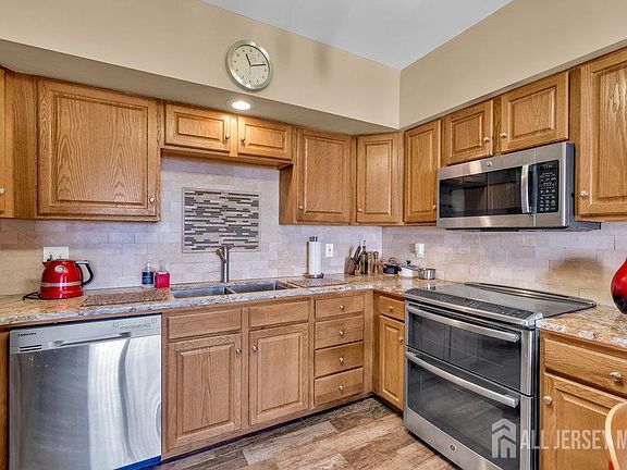 Welcome to Shore Gate Village, a 55+ adult community in South Amboy. Bright and beautiful top floor unit with amazing views. Enjoy wonderful sunsets from your balcony! This home features two bedrooms and 1.5 baths along with an in-unit laundry area making this home complete. The kitchen features granite counter tops, tiled backsplash, stainless steel appliances and a breakfast bar. The kitchen opens up to a dining/living room area which leads to the balcony. The home features beautiful wood-look tile in living room, kitchen and hallway. Spacious closets plus an extra storage bin area. Close to train, ferry, major roads, shopping, restaurants and Raritan Bay Waterfront Park.