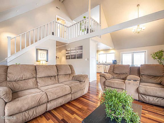 Neuse River WATERFRONT home perfectly situated on 1.5 acres and featuring amazing water views from almost every room and a detached garage with second story workshop/storage space. The ground floor includes a one car garage space, one bedroom and a full bathroom. Enter the main floor to find an open concept living space with cherry hardwood flooring under a tall vaulted ceiling. Enjoy entertaining from the kitchen complete with stainless steel Bosch appliances. Two main floor bedrooms offer guests a comfortable room of their own. Have a private master bedroom upstairs finished with an updated en suite bathroom with tile flooring and a walk-in shower. Spend all of your time in the outdoors either relaxing in the screened-in porch, hosting barbecues out on the back deck or with a fishing pole down by the water. Get tons of projects done with help from the detached garage. Located just minutes from Historic Downtown New Bern or only a short drive to MCAS Cherry Point and North Carolina's Crystal Coast beaches. Call us today for your private showing!