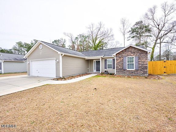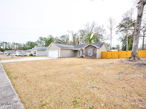 Great home Located in Slocum Woods! Home has 3 beds, 2 baths and is ready for new owners! Living room offers vaulted ceilings and electric fireplace. Kitchen offers stainless steel/black appliances, gas range/stove and breakfast bar. Off the kitchen is your master suite with walk-in closet and on-suite bathroom offering soaking tub, stand up shower and vanity with storage. Laundry room is off the 2-car garage. Fenced in backyard with patio and whole-house generator makes this home a must see! All appliances convey with home. Quick access to Cherry Point Base, Crystal Coast Beaches and New Bern amenities!